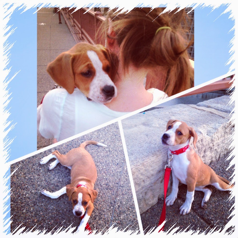 My husband and I have relocated to a new city, started new jobs, and adopted an adorable new puppy. Here are some pics of my new furry friend! Her name is Kinzie and she is an 11 week old Boxer/Lab/Setter mix that we rescued 1 week ago! I couldn't just pick one picture, so hope you don't mind seeing a few!
